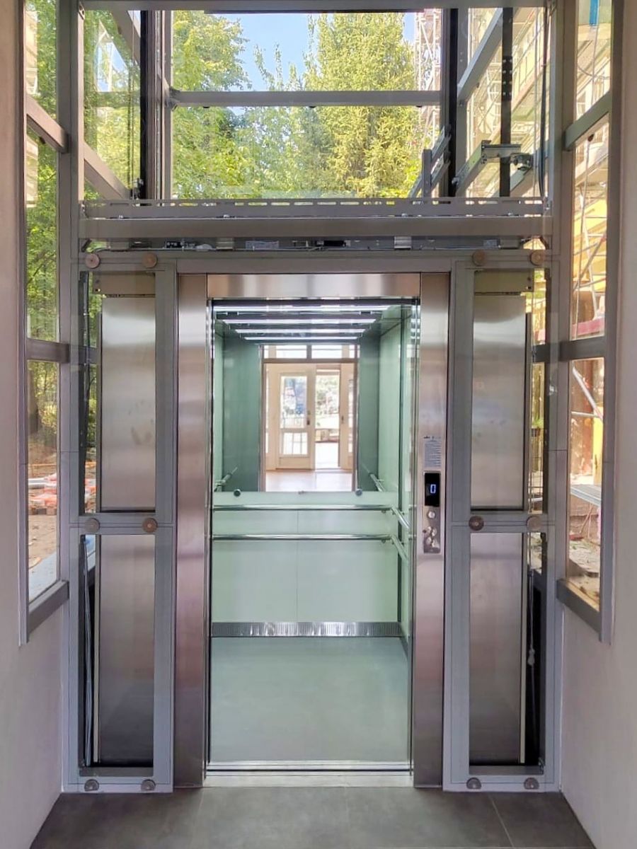- Kabinové i šachetní dveře jsou automatické v provedení nerez brus.